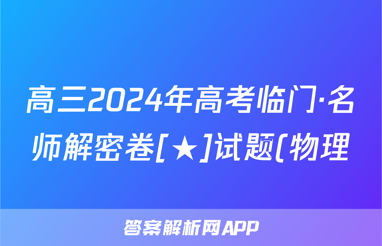 高三2024年高考临门·名师解密卷[★]试题(物理)正在持续更新,目前2026卷行天下答案网为大家整理了相关试题及答案,供大家查缺补漏,高效提升成绩。