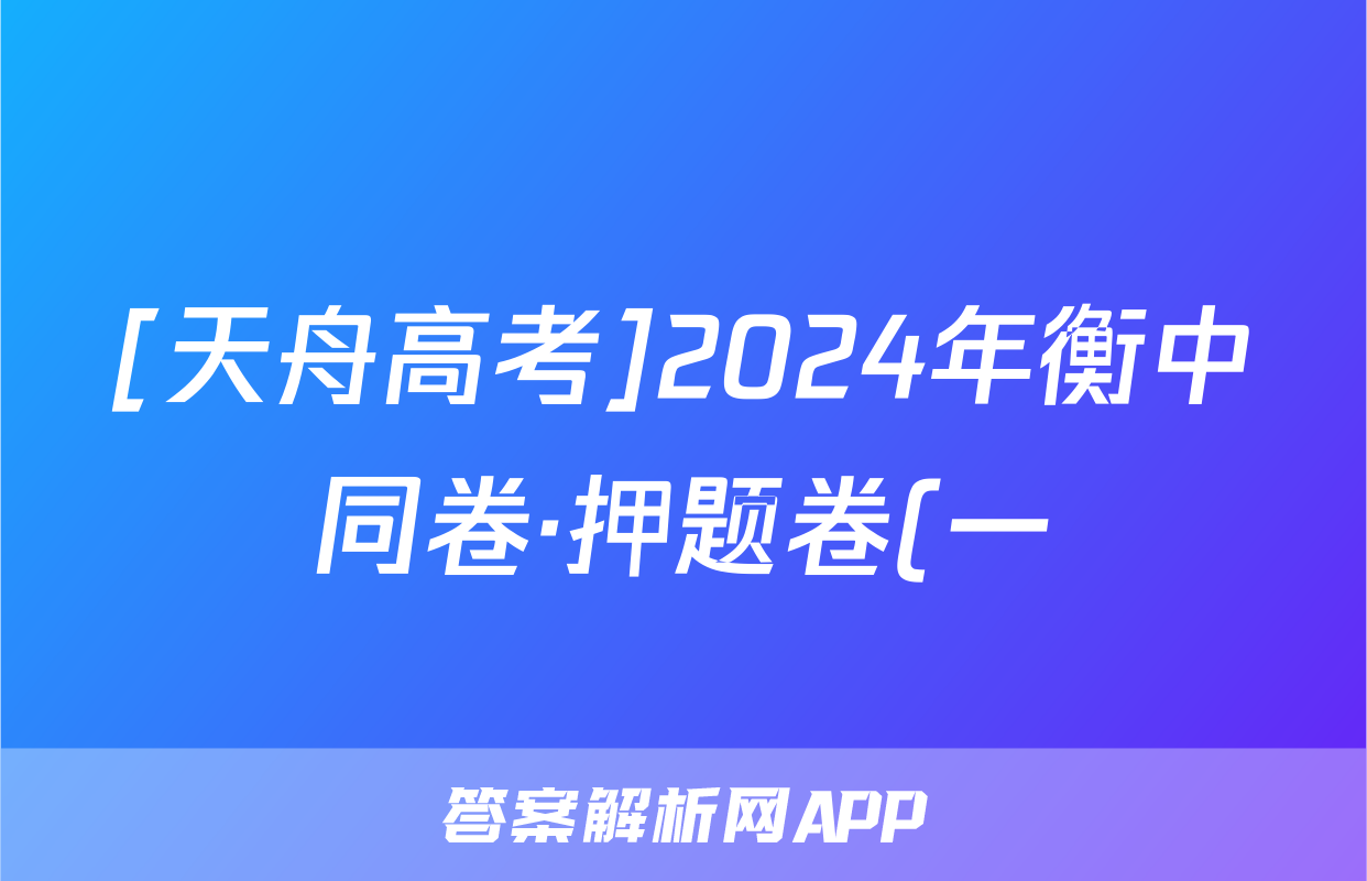 [天舟高考]2024年衡中同卷·押题卷(一)1试题(化学)正在持续更新,目前2026卷行天下答案网为大家整理了相关试题及答案,供大家查缺补漏,高效提升成绩。