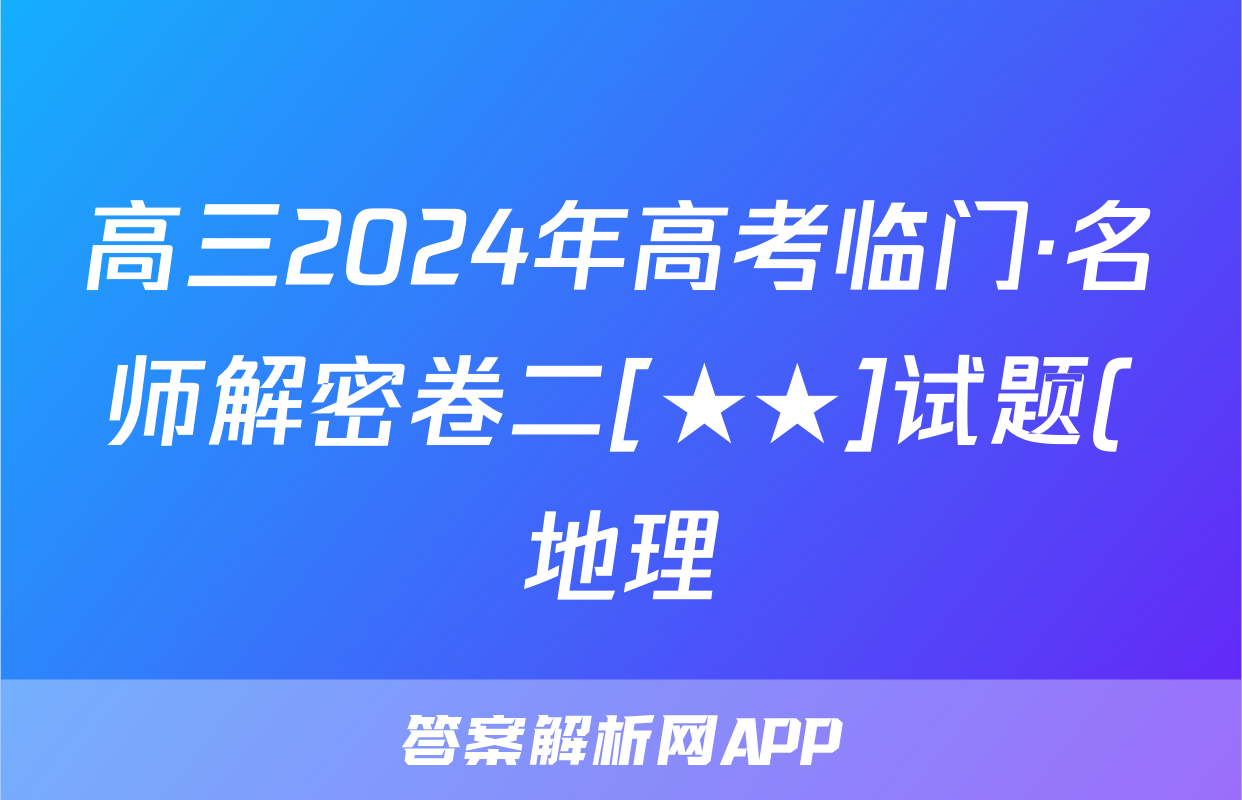 高三2024年高考临门·名师解密卷二[★★]试题(地理)正在持续更新,目前2026卷行天下答案网为大家整理了相关试题及答案,供大家查缺补漏,高效提升成绩。