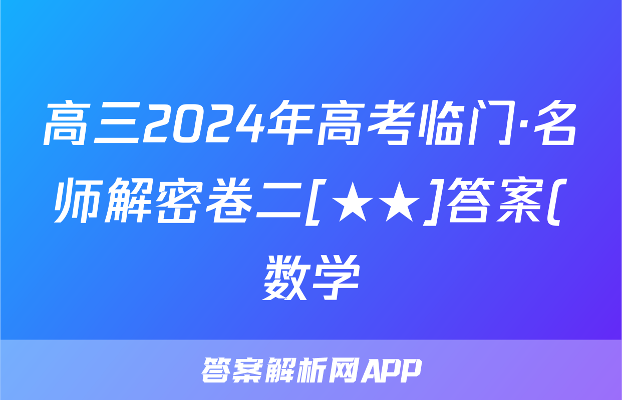 高三2024年高考临门·名师解密卷二[★★]答案(数学)正在持续更新,目前2026卷行天下答案网为大家整理了相关试题及答案,供大家查缺补漏,高效提升成绩。