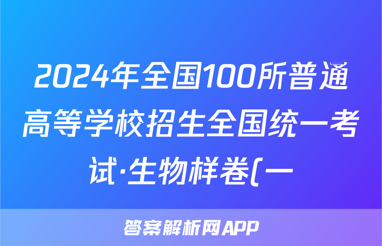 2024年全国100所普通高等学校招生全国统一考试·生物样卷(一)1[24·(新高考)高考样卷·生物·Y]答案正在持续更新,目前2026卷行天下答案网为大家整理了相关试题及答案,供大家查缺补漏,高效提升成绩。
