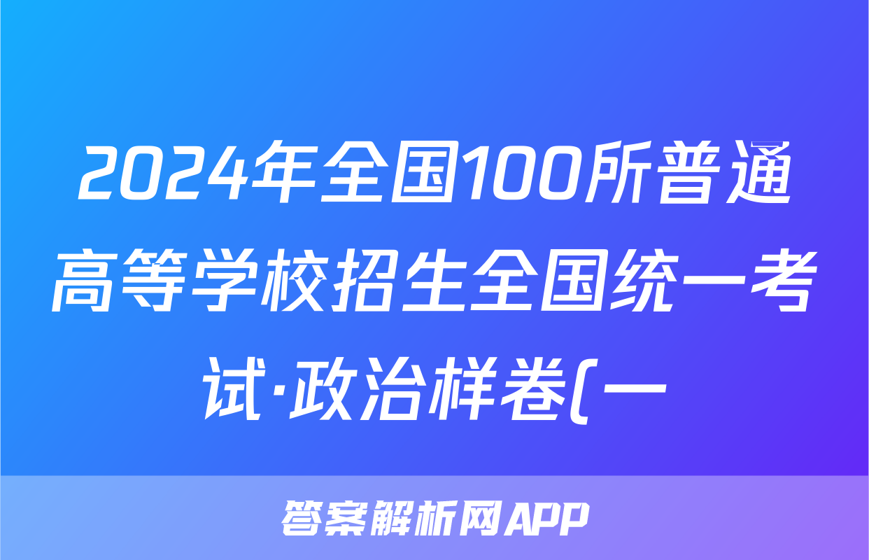 2024年全国100所普通高等学校招生全国统一考试·政治样卷(一)1[24·(新高考)高考样卷·政治·Y]答案正在持续更新,目前2026卷行天下答案网为大家整理了相关试题及答案,供大家查缺补漏,高效提升成绩。