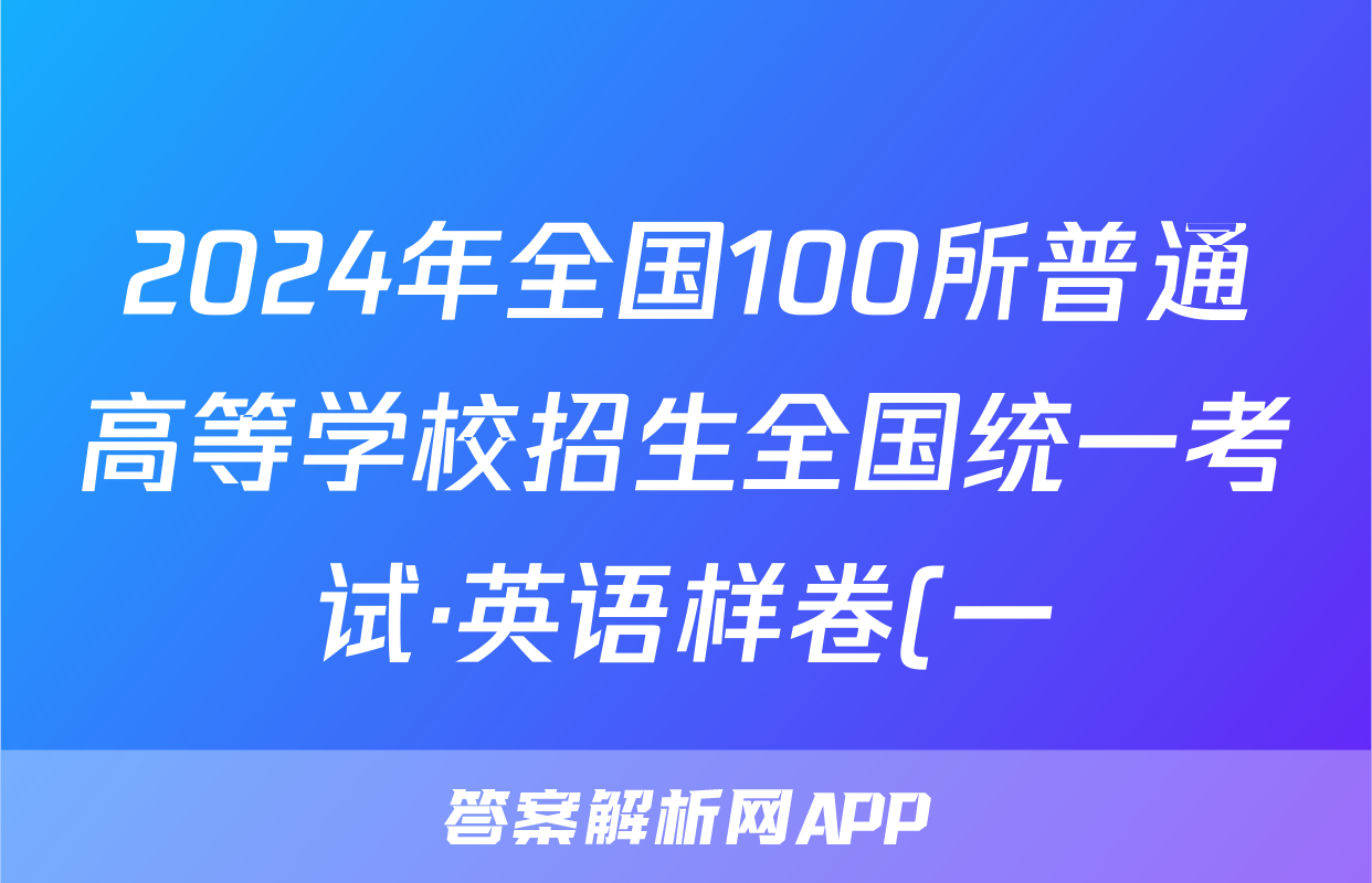 2024年全国100所普通高等学校招生全国统一考试·英语样卷(一)1[24·(新高考)高考样卷·英语·Y]试题正在持续更新,目前2026卷行天下答案网为大家整理了相关试题及答案,供大家查缺补漏,高效提升成绩。