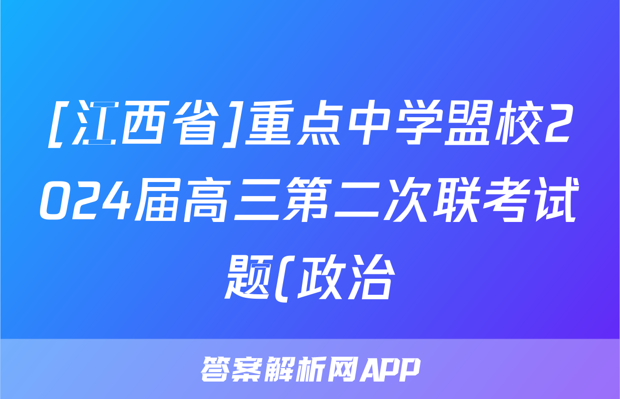 [江西省]重点中学盟校2024届高三第二次联考试题(政治)正在持续更新,目前2026卷行天下答案网为大家整理了相关试题及答案,供大家查缺补漏,高效提升成绩。