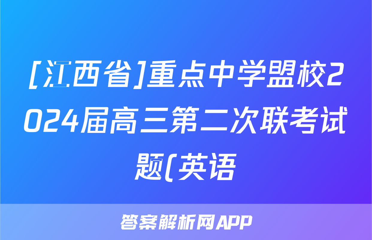 [江西省]重点中学盟校2024届高三第二次联考试题(英语)正在持续更新,目前2026卷行天下答案网为大家整理了相关试题及答案,供大家查缺补漏,高效提升成绩。