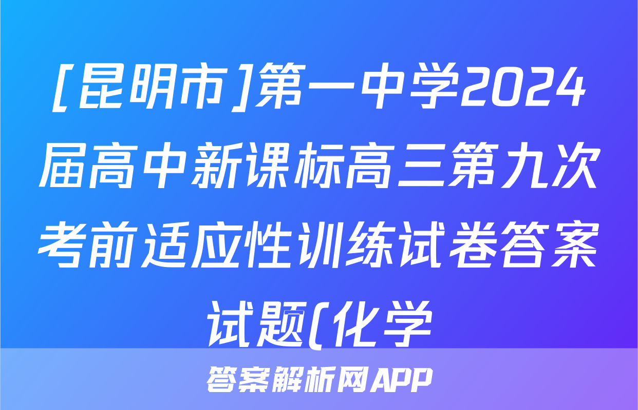 [昆明市]第一中学2024届高中新课标高三第九次考前适应性训练试卷答案试题(化学)正在持续更新,目前2026卷行天下答案网为大家整理了相关试题及答案,供大家查缺补漏,高效提升成绩。