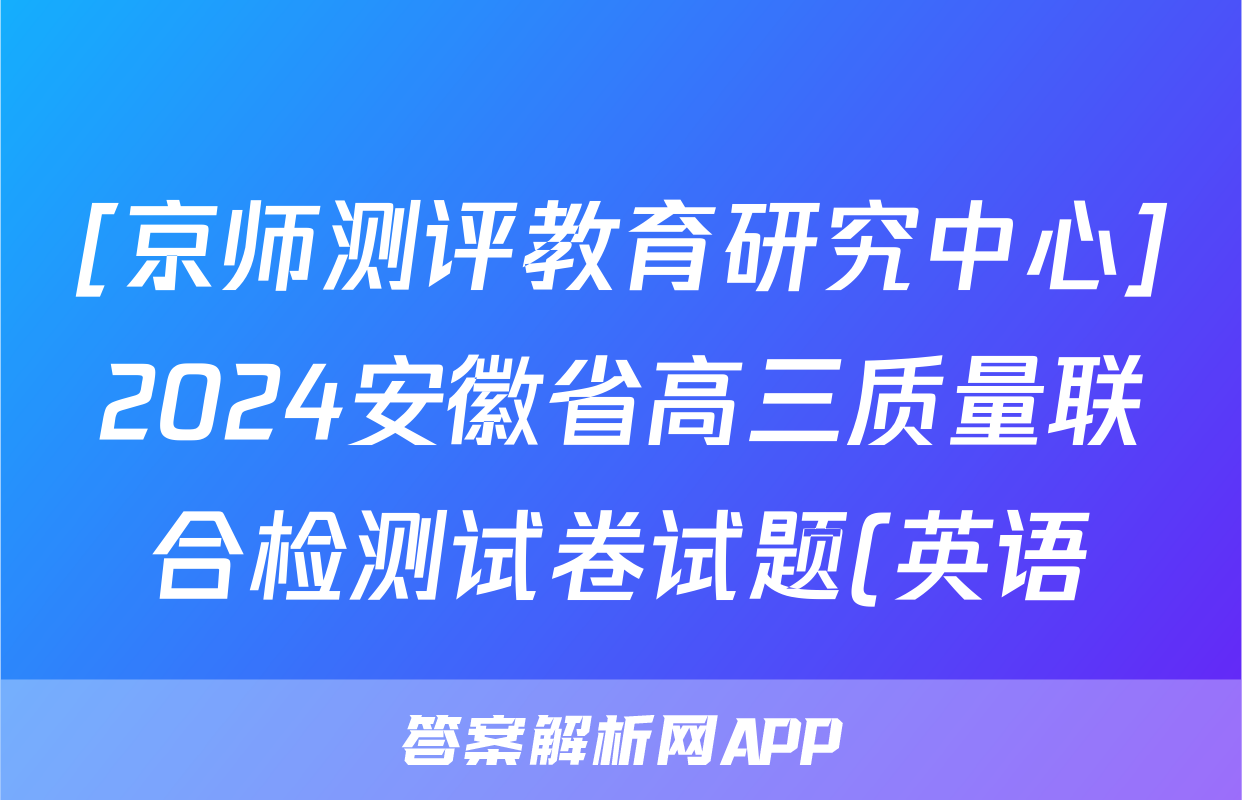 [京师测评教育研究中心]2024安徽省高三质量联合检测试卷试题(英语)正在持续更新,目前2026卷行天下答案网为大家整理了相关试题及答案,供大家查缺补漏,高效提升成绩。