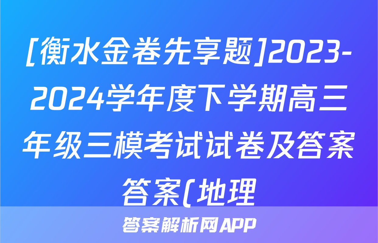 [衡水金卷先享题]2023-2024学年度下学期高三年级三模考试试卷及答案答案(地理)正在持续更新,目前2026卷行天下答案网为大家整理了相关试题及答案,供大家查缺补漏,高效提升成绩。