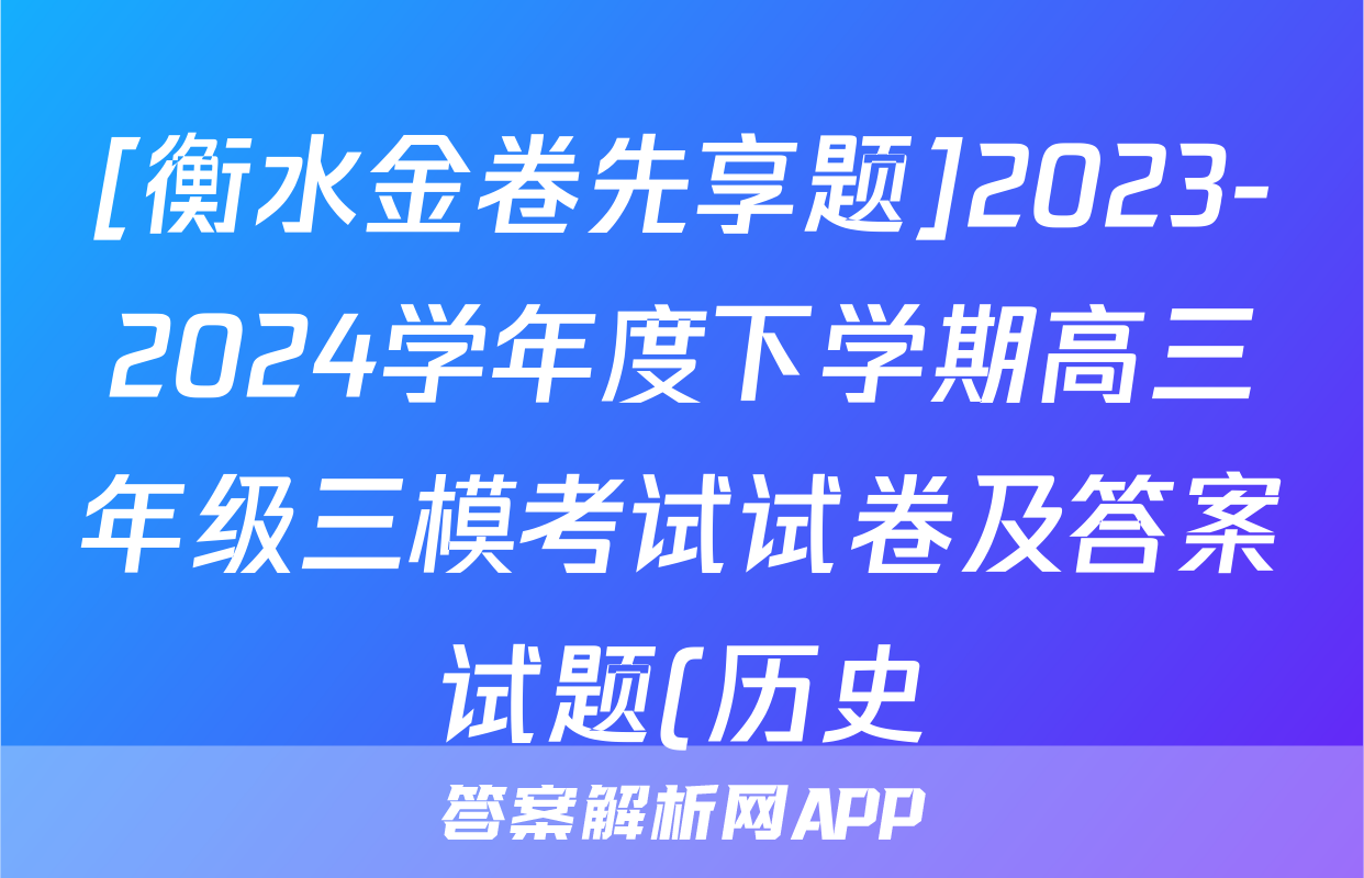 [衡水金卷先享题]2023-2024学年度下学期高三年级三模考试试卷及答案试题(历史)正在持续更新,目前2026卷行天下答案网为大家整理了相关试题及答案,供大家查缺补漏,高效提升成绩。