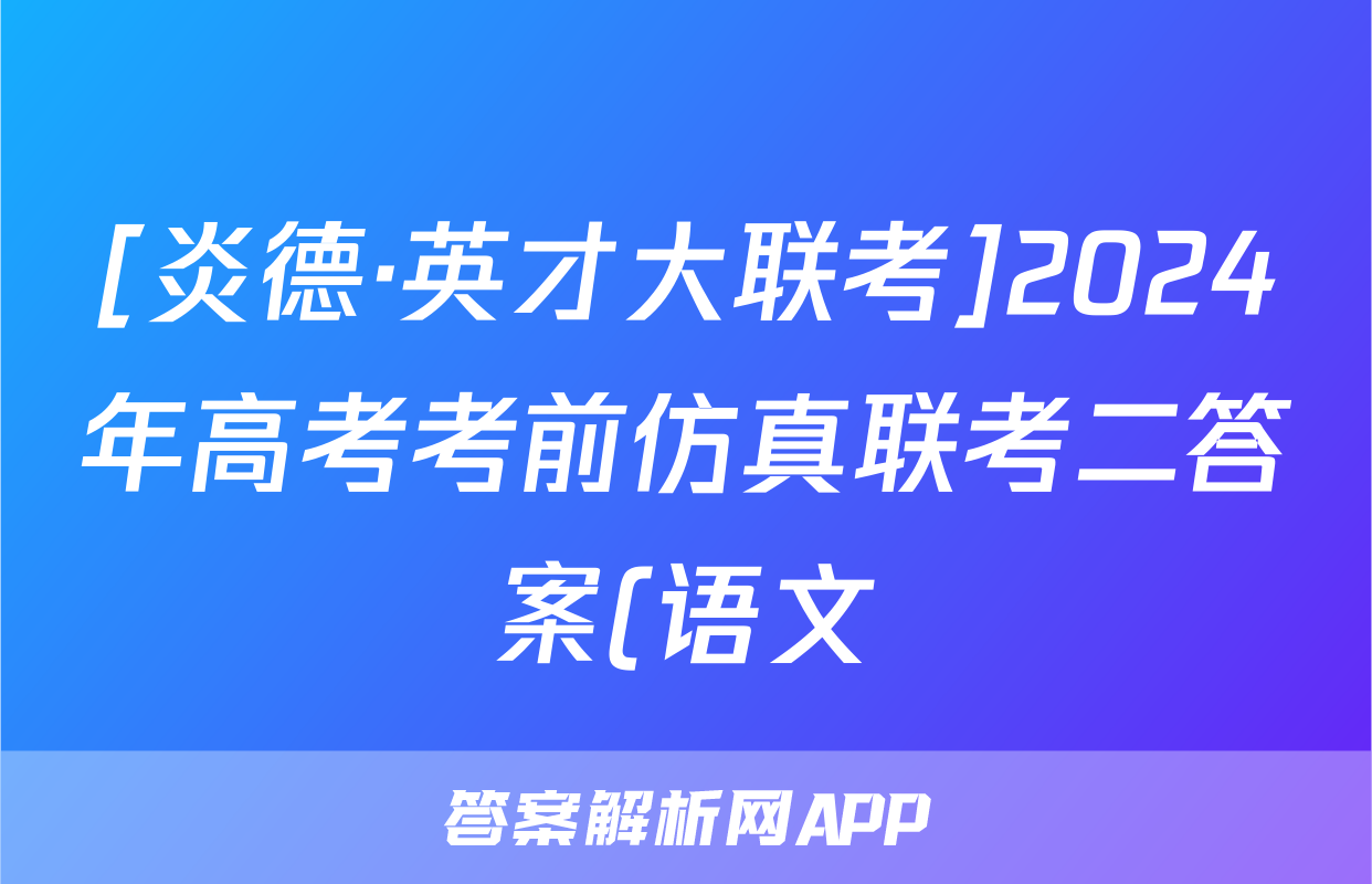 [炎德·英才大联考]2024年高考考前仿真联考二答案(语文)正在持续更新,目前2026卷行天下答案网为大家整理了相关试题及答案,供大家查缺补漏,高效提升成绩。