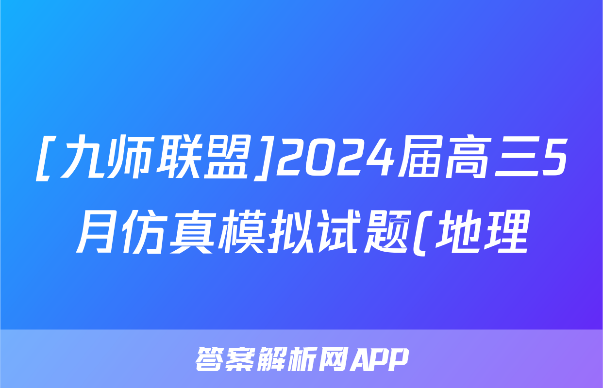 [九师联盟]2024届高三5月仿真模拟试题(地理)正在持续更新,目前2026卷行天下答案网为大家整理了相关试题及答案,供大家查缺补漏,高效提升成绩。