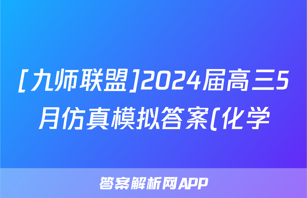 [九师联盟]2024届高三5月仿真模拟答案(化学)正在持续更新,目前2026卷行天下答案网为大家整理了相关试题及答案,供大家查缺补漏,高效提升成绩。