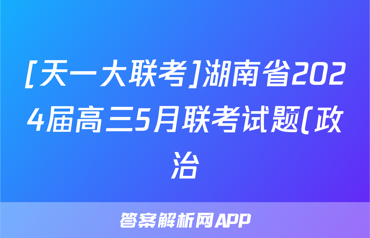 [天一大联考]湖南省2024届高三5月联考试题(政治)正在持续更新,目前2026卷行天下答案网为大家整理了相关试题及答案,供大家查缺补漏,高效提升成绩。