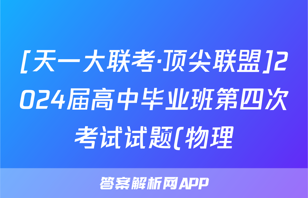 [天一大联考·顶尖联盟]2024届高中毕业班第四次考试试题(物理)正在持续更新,目前2026卷行天下答案网为大家整理了相关试题及答案,供大家查缺补漏,高效提升成绩。