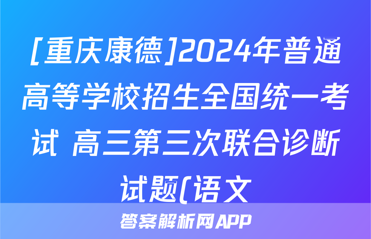 [重庆康德]2024年普通高等学校招生全国统一考试 高三第三次联合诊断试题(语文)正在持续更新,目前2026卷行天下答案网为大家整理了相关试题及答案,供大家查缺补漏,高效提升成绩。