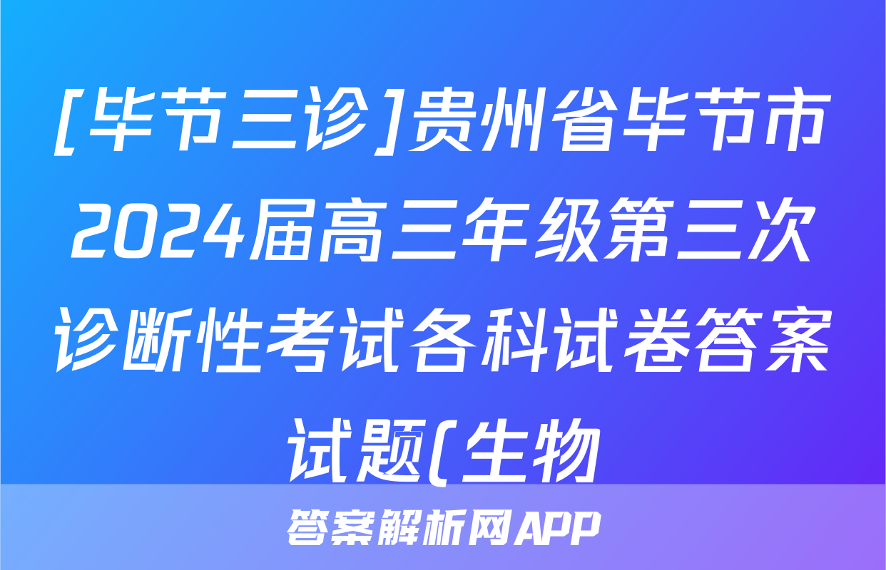 [毕节三诊]贵州省毕节市2024届高三年级第三次诊断性考试各科试卷答案试题(生物)正在持续更新,目前2026卷行天下答案网为大家整理了相关试题及答案,供大家查缺补漏,高效提升成绩。