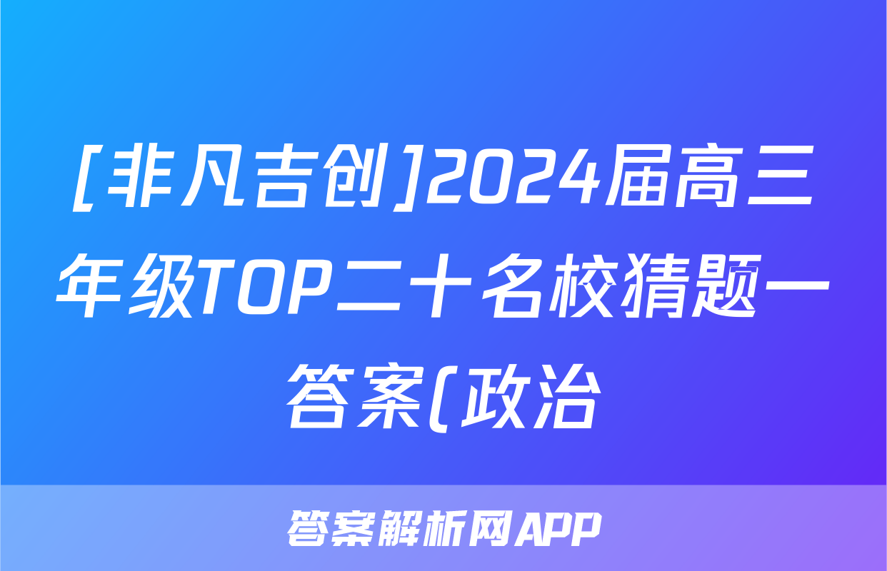 [非凡吉创]2024届高三年级TOP二十名校猜题一答案(政治)正在持续更新,目前2026卷行天下答案网为大家整理了相关试题及答案,供大家查缺补漏,高效提升成绩。