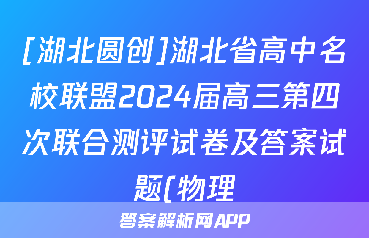 [湖北圆创]湖北省高中名校联盟2024届高三第四次联合测评试卷及答案试题(物理)正在持续更新,目前2026卷行天下答案网为大家整理了相关试题及答案,供大家查缺补漏,高效提升成绩。