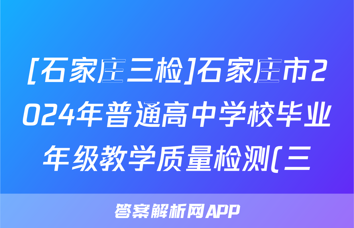 [石家庄三检]石家庄市2024年普通高中学校毕业年级教学质量检测(三)3试题(物理)正在持续更新,目前2026卷行天下答案网为大家整理了相关试题及答案,供大家查缺补漏,高效提升成绩。
