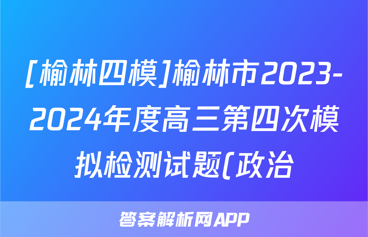 [榆林四模]榆林市2023-2024年度高三第四次模拟检测试题(政治)正在持续更新,目前2026卷行天下答案网为大家整理了相关试题及答案,供大家查缺补漏,高效提升成绩。