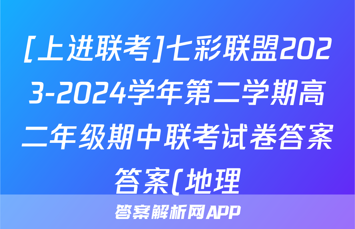[上进联考]七彩联盟2023-2024学年第二学期高二年级期中联考试卷答案答案(地理)正在持续更新,目前2026卷行天下答案网为大家整理了相关试题及答案,供大家查缺补漏,高效提升成绩。