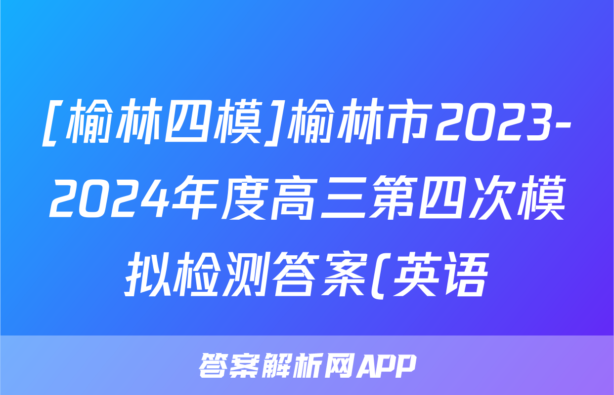 [榆林四模]榆林市2023-2024年度高三第四次模拟检测答案(英语)正在持续更新,目前2026卷行天下答案网为大家整理了相关试题及答案,供大家查缺补漏,高效提升成绩。
