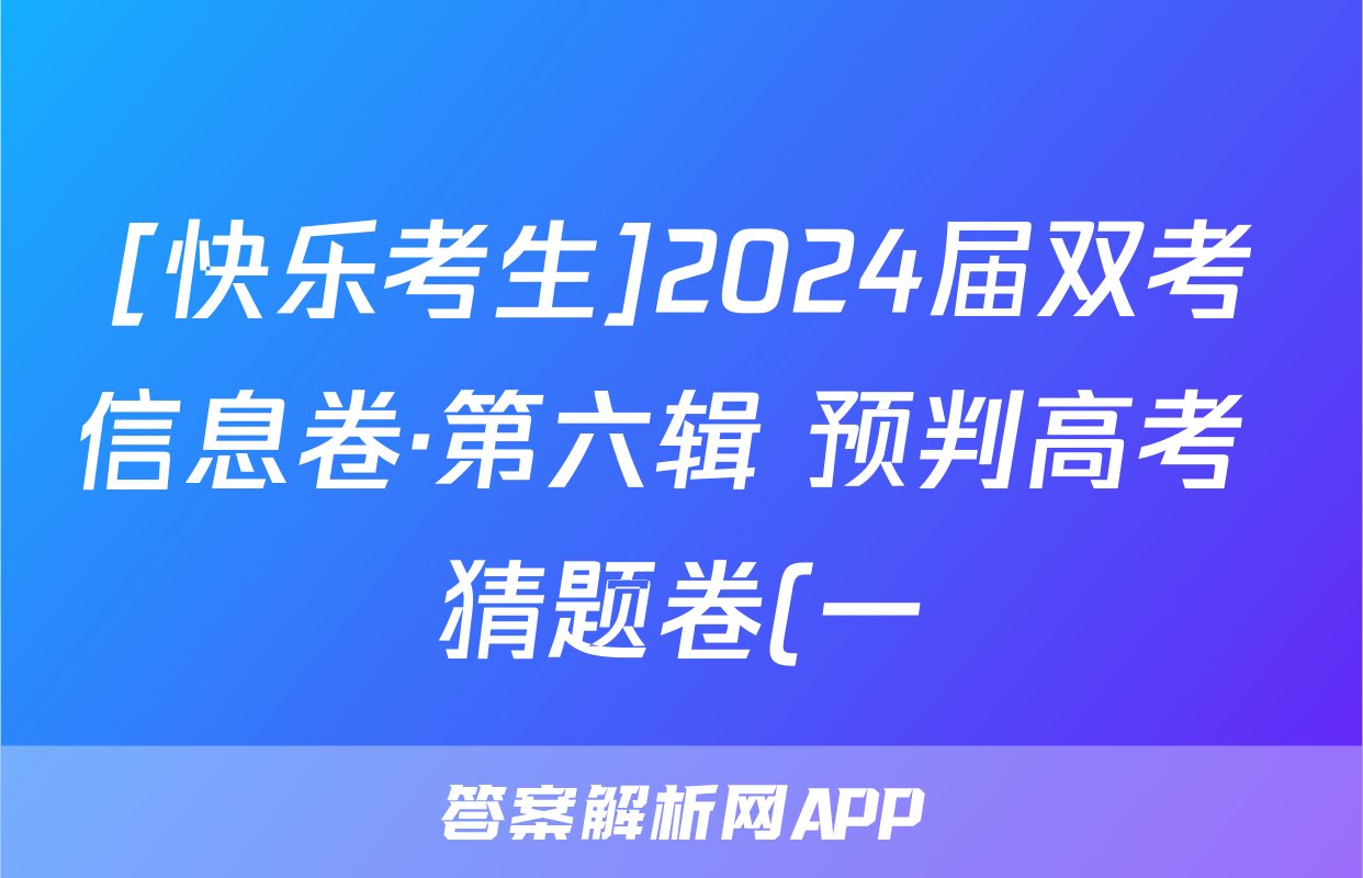 [快乐考生]2024届双考信息卷·第六辑 预判高考 猜题卷(一)1试卷及答案试题(地理)正在持续更新,目前2026卷行天下答案网为大家整理了相关试题及答案,供大家查缺补漏,高效提升成绩。