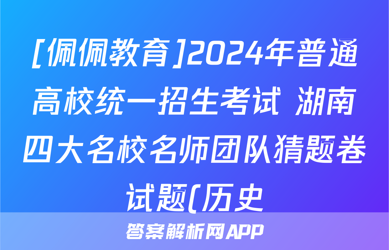 [佩佩教育]2024年普通高校统一招生考试 湖南四大名校名师团队猜题卷试题(历史)正在持续更新,目前2026卷行天下答案网为大家整理了相关试题及答案,供大家查缺补漏,高效提升成绩。