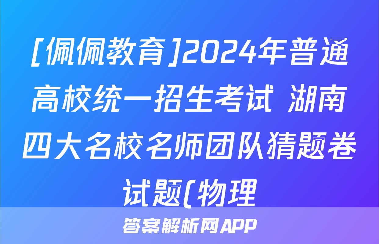 [佩佩教育]2024年普通高校统一招生考试 湖南四大名校名师团队猜题卷试题(物理)正在持续更新,目前2026卷行天下答案网为大家整理了相关试题及答案,供大家查缺补漏,高效提升成绩。