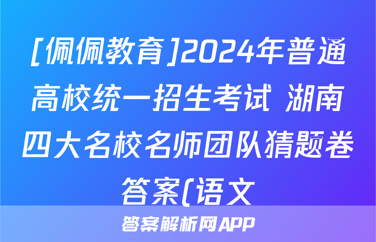 [佩佩教育]2024年普通高校统一招生考试 湖南四大名校名师团队猜题卷答案(语文)正在持续更新,目前2026卷行天下答案网为大家整理了相关试题及答案,供大家查缺补漏,高效提升成绩。