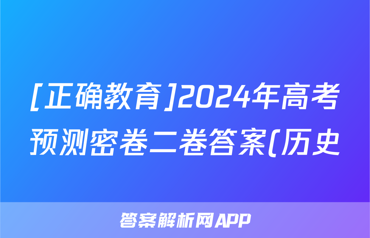 [正确教育]2024年高考预测密卷二卷答案(历史)正在持续更新,目前2026卷行天下答案网为大家整理了相关试题及答案,供大家查缺补漏,高效提升成绩。