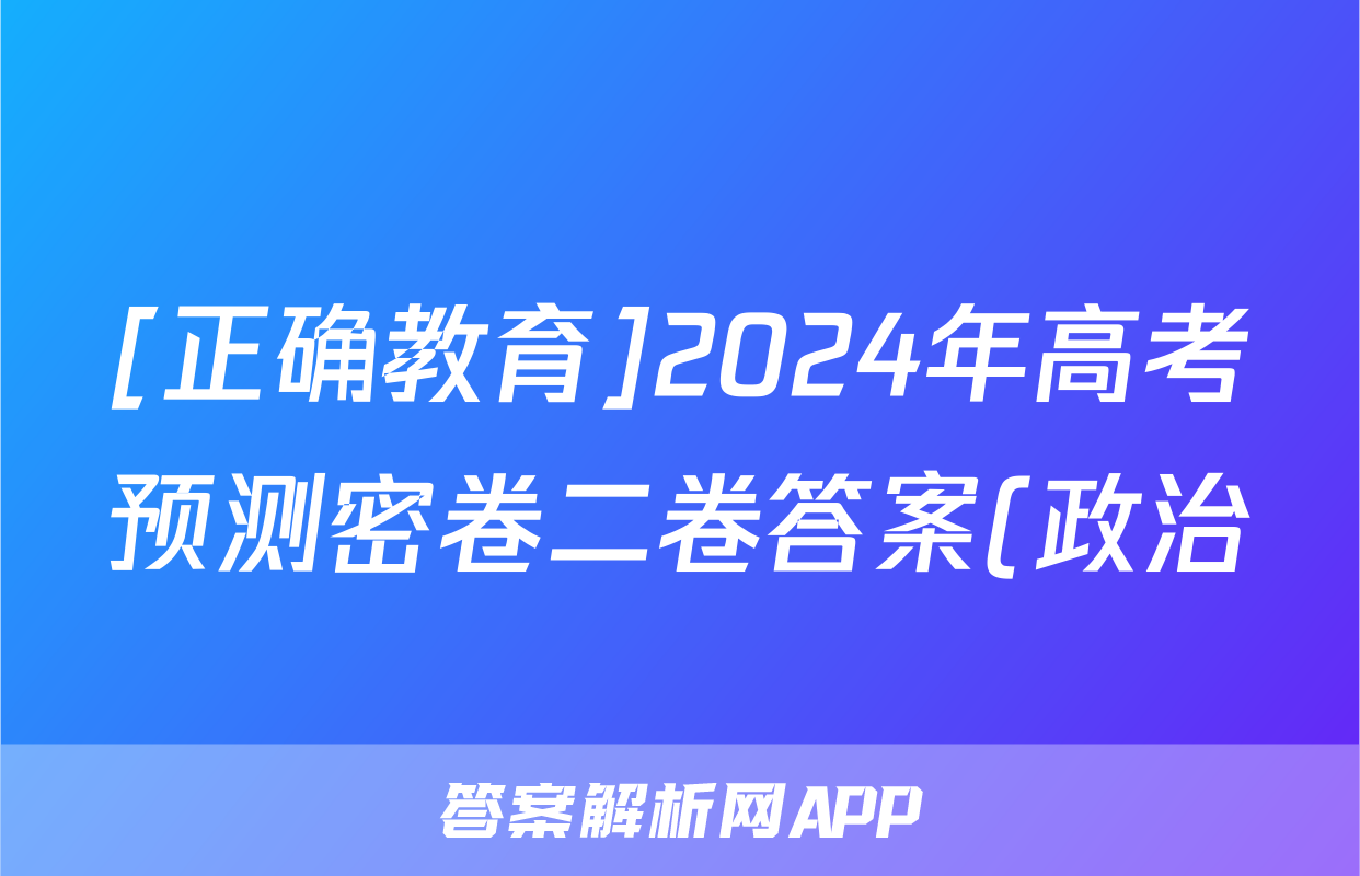 [正确教育]2024年高考预测密卷二卷答案(政治)正在持续更新,目前2026卷行天下答案网为大家整理了相关试题及答案,供大家查缺补漏,高效提升成绩。