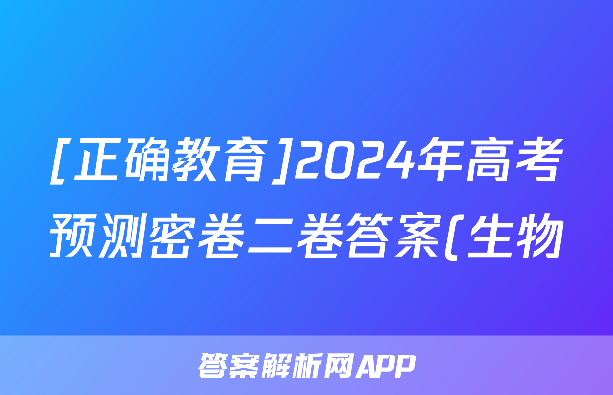 [正确教育]2024年高考预测密卷二卷答案(生物)正在持续更新,目前2026卷行天下答案网为大家整理了相关试题及答案,供大家查缺补漏,高效提升成绩。