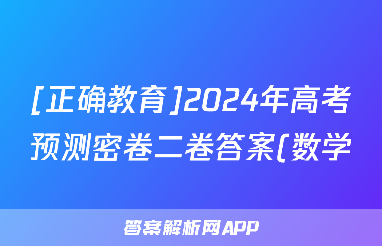 [正确教育]2024年高考预测密卷二卷答案(数学)正在持续更新,目前2026卷行天下答案网为大家整理了相关试题及答案,供大家查缺补漏,高效提升成绩。