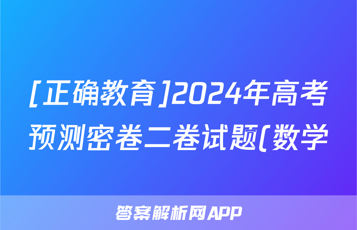[正确教育]2024年高考预测密卷二卷试题(数学)正在持续更新,目前2026卷行天下答案网为大家整理了相关试题及答案,供大家查缺补漏,高效提升成绩。