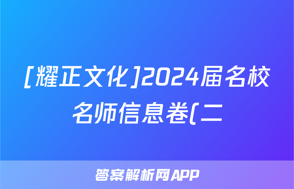 [耀正文化]2024届名校名师信息卷(二)2答案(地理)正在持续更新,目前2026卷行天下答案网为大家整理了相关试题及答案,供大家查缺补漏,高效提升成绩。