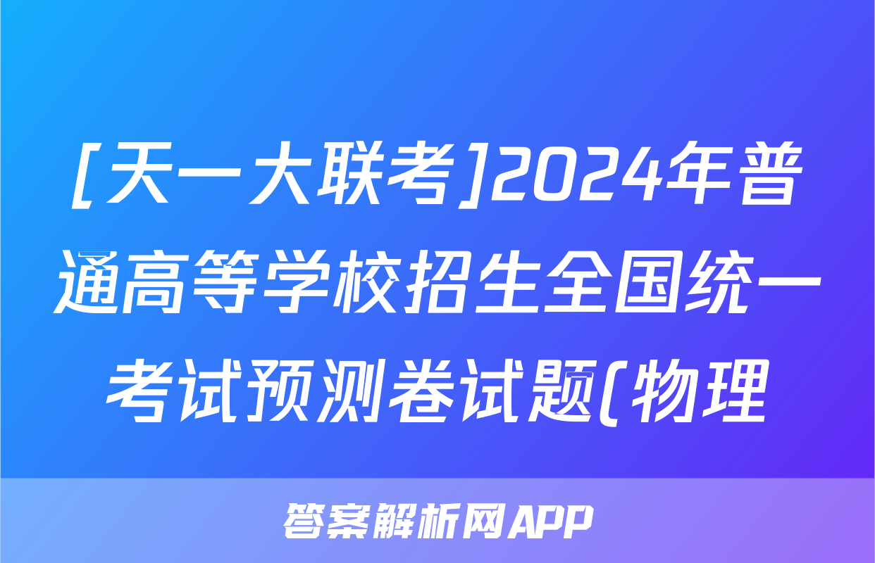 [天一大联考]2024年普通高等学校招生全国统一考试预测卷试题(物理)正在持续更新,目前2026卷行天下答案网为大家整理了相关试题及答案,供大家查缺补漏,高效提升成绩。