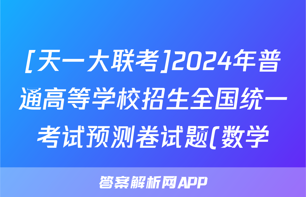 [天一大联考]2024年普通高等学校招生全国统一考试预测卷试题(数学)正在持续更新,目前2026卷行天下答案网为大家整理了相关试题及答案,供大家查缺补漏,高效提升成绩。
