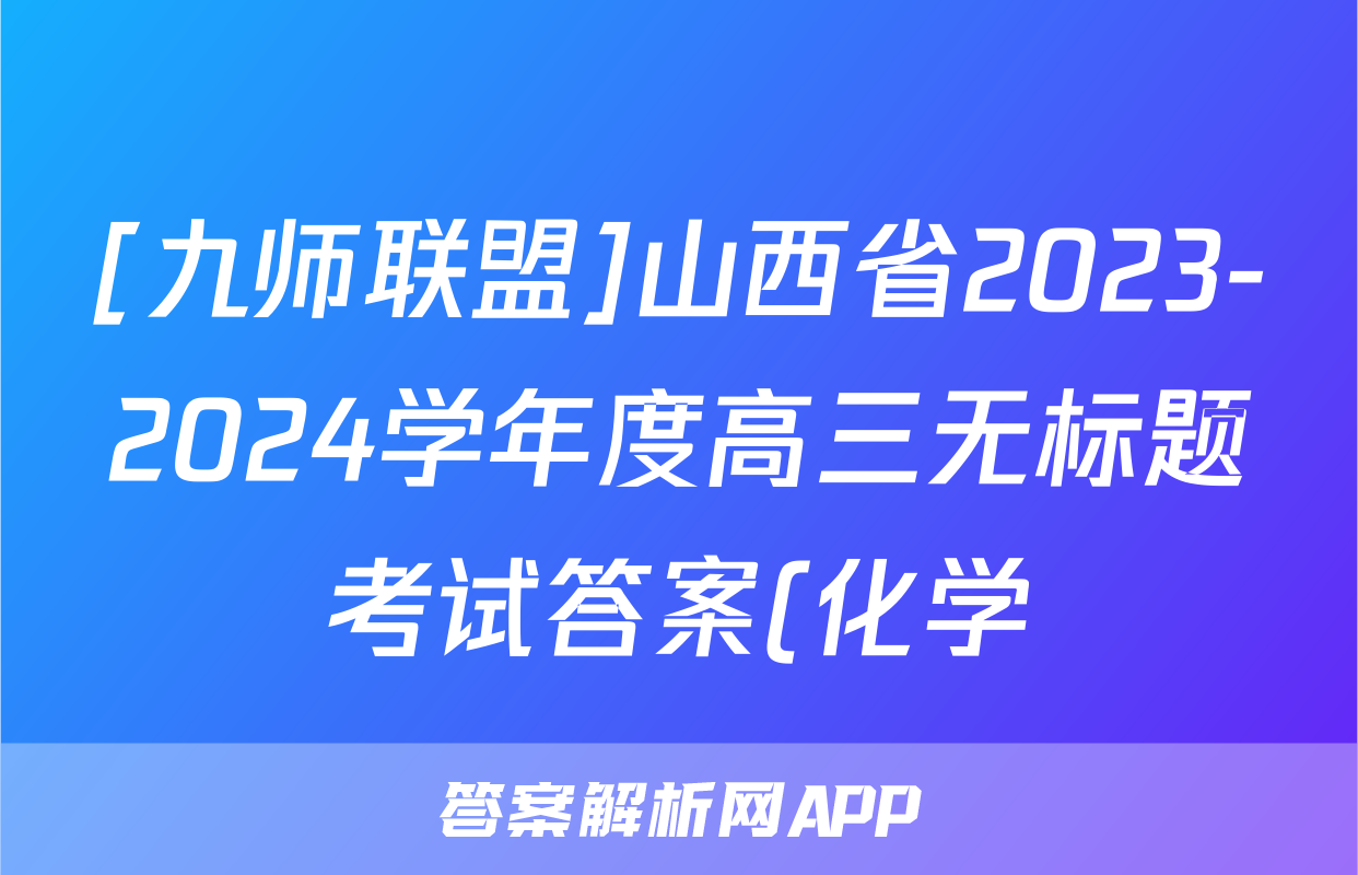 [九师联盟]山西省2023-2024学年度高三无标题考试答案(化学)正在持续更新,目前2026卷行天下答案网为大家整理了相关试题及答案,供大家查缺补漏,高效提升成绩。