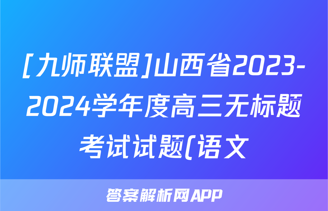 [九师联盟]山西省2023-2024学年度高三无标题考试试题(语文)正在持续更新,目前2026卷行天下答案网为大家整理了相关试题及答案,供大家查缺补漏,高效提升成绩。