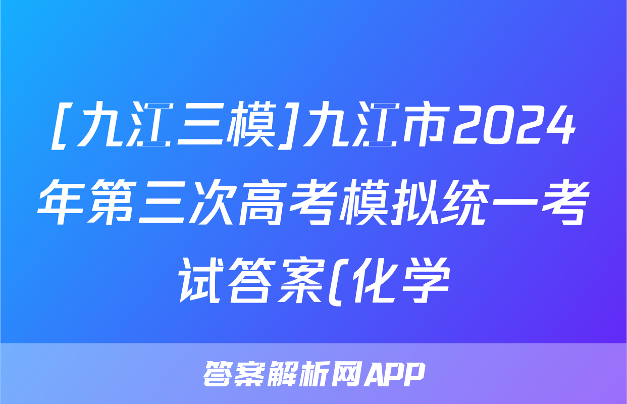 [九江三模]九江市2024年第三次高考模拟统一考试答案(化学)正在持续更新,目前2026卷行天下答案网为大家整理了相关试题及答案,供大家查缺补漏,高效提升成绩。
