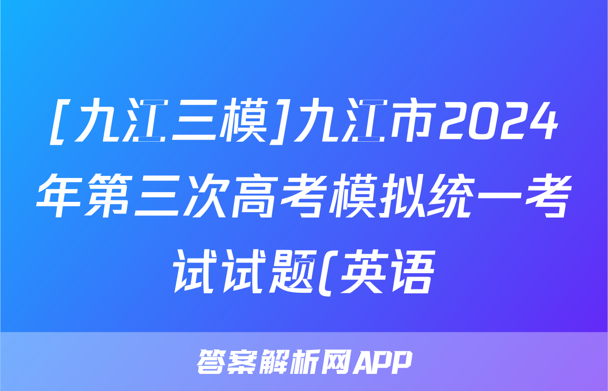 [九江三模]九江市2024年第三次高考模拟统一考试试题(英语)正在持续更新,目前2026卷行天下答案网为大家整理了相关试题及答案,供大家查缺补漏,高效提升成绩。