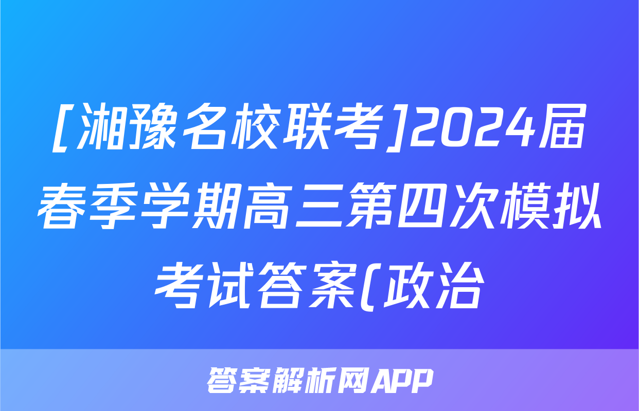 [湘豫名校联考]2024届春季学期高三第四次模拟考试答案(政治)正在持续更新,目前2026卷行天下答案网为大家整理了相关试题及答案,供大家查缺补漏,高效提升成绩。