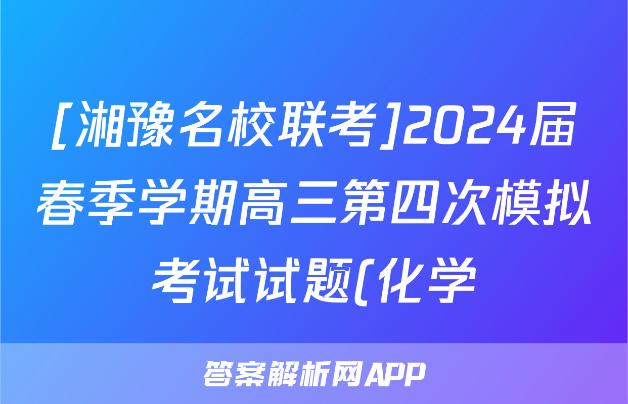 [湘豫名校联考]2024届春季学期高三第四次模拟考试试题(化学)正在持续更新,目前2026卷行天下答案网为大家整理了相关试题及答案,供大家查缺补漏,高效提升成绩。