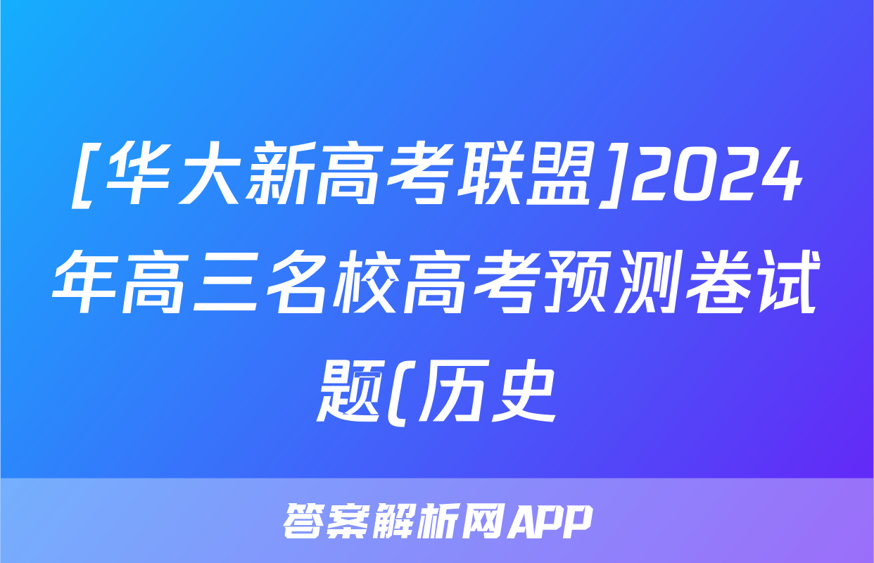 [华大新高考联盟]2024年高三名校高考预测卷试题(历史)正在持续更新,目前2026卷行天下答案网为大家整理了相关试题及答案,供大家查缺补漏,高效提升成绩。