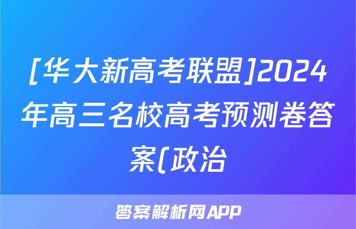 [华大新高考联盟]2024年高三名校高考预测卷答案(政治)正在持续更新,目前2026卷行天下答案网为大家整理了相关试题及答案,供大家查缺补漏,高效提升成绩。