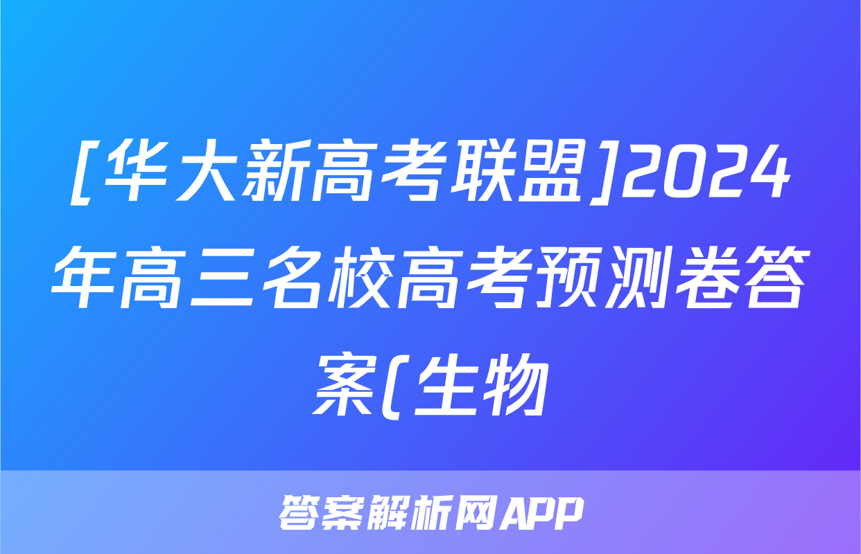 [华大新高考联盟]2024年高三名校高考预测卷答案(生物)正在持续更新,目前2026卷行天下答案网为大家整理了相关试题及答案,供大家查缺补漏,高效提升成绩。