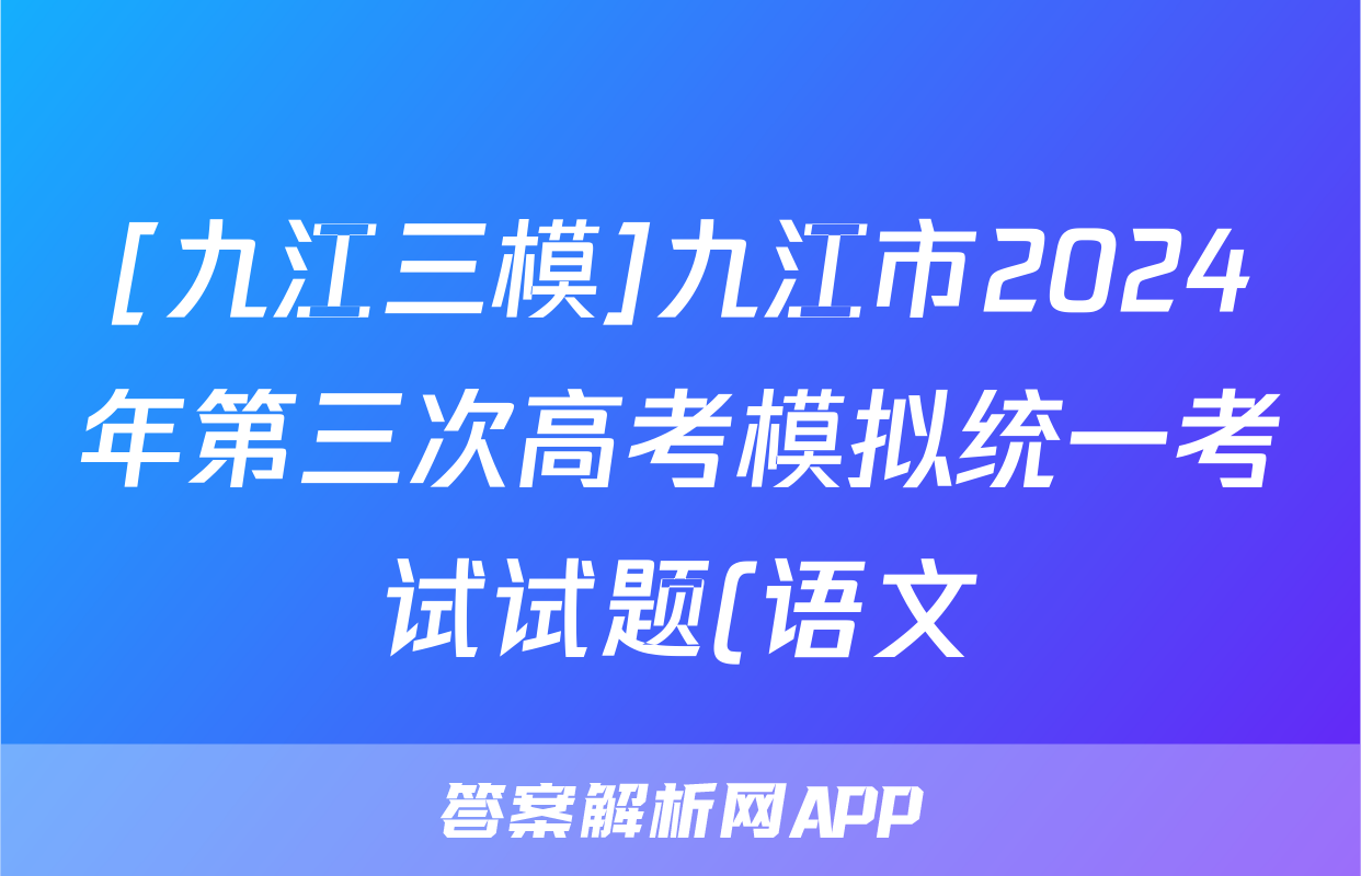[九江三模]九江市2024年第三次高考模拟统一考试试题(语文)正在持续更新,目前2026卷行天下答案网为大家整理了相关试题及答案,供大家查缺补漏,高效提升成绩。
