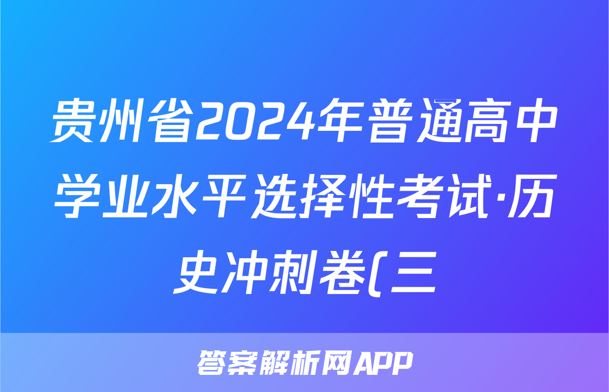 贵州省2024年普通高中学业水平选择性考试·历史冲刺卷(三)3[24·(新高考)CCJ·历史·GZ]答案正在持续更新,目前2026卷行天下答案网为大家整理了相关试题及答案,供大家查缺补漏,高效提升成绩。