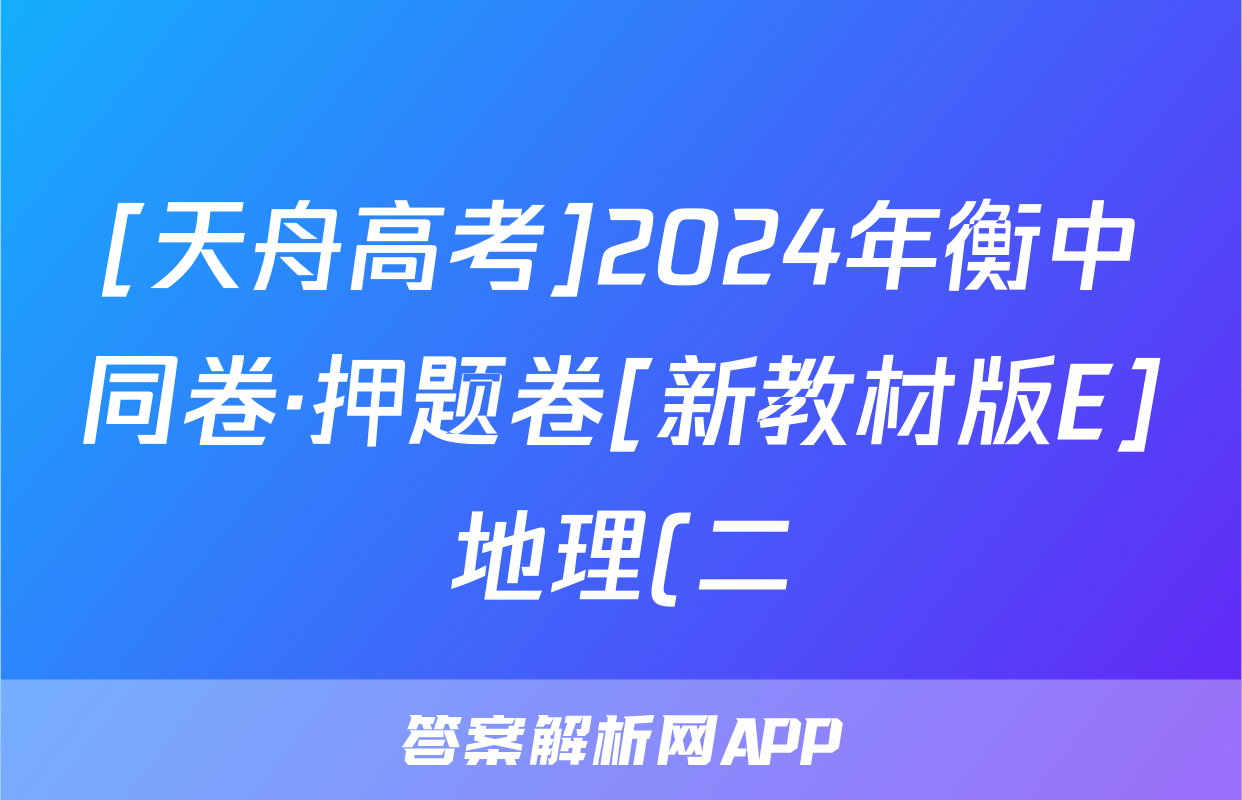 [天舟高考]2024年衡中同卷·押题卷[新教材版E]地理(二)2试题正在持续更新,目前2026卷行天下答案网为大家整理了相关试题及答案,供大家查缺补漏,高效提升成绩。